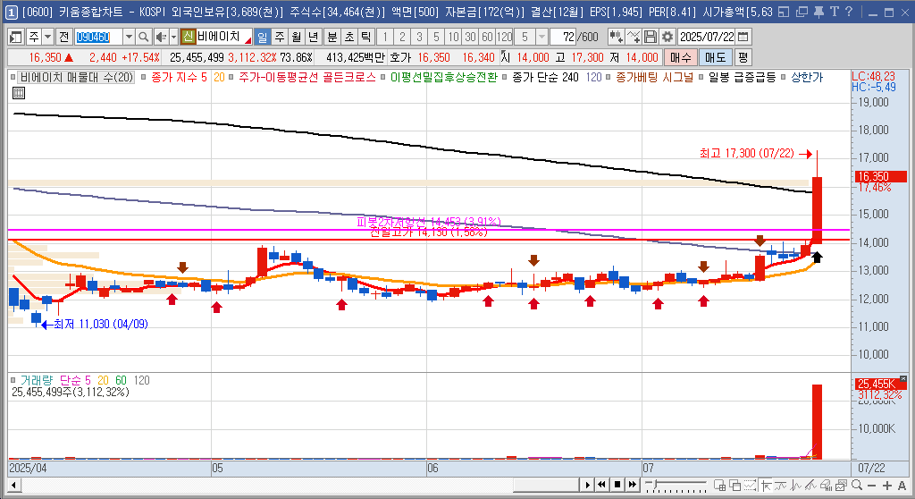 근래 들어 대량 거래량이 동반한 점도 긍정적인 요소 입니다.